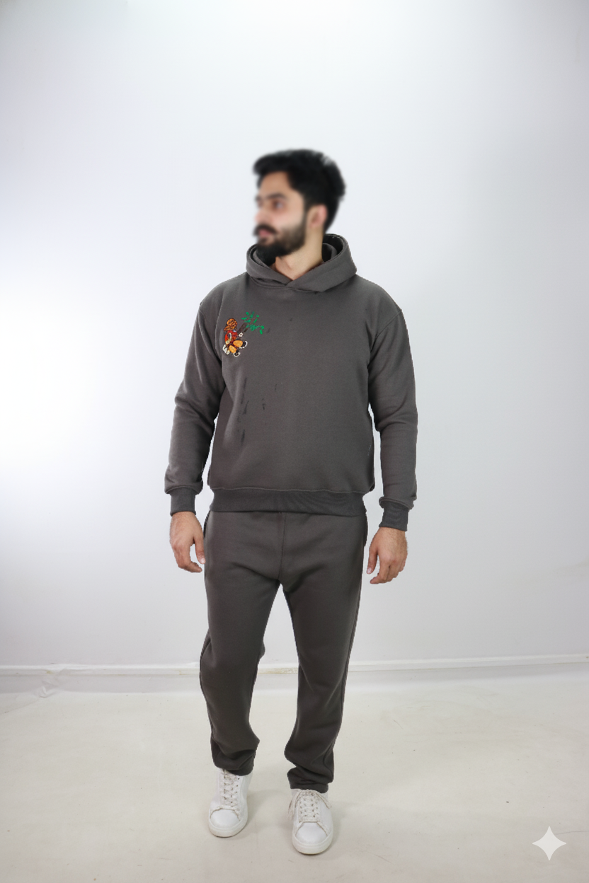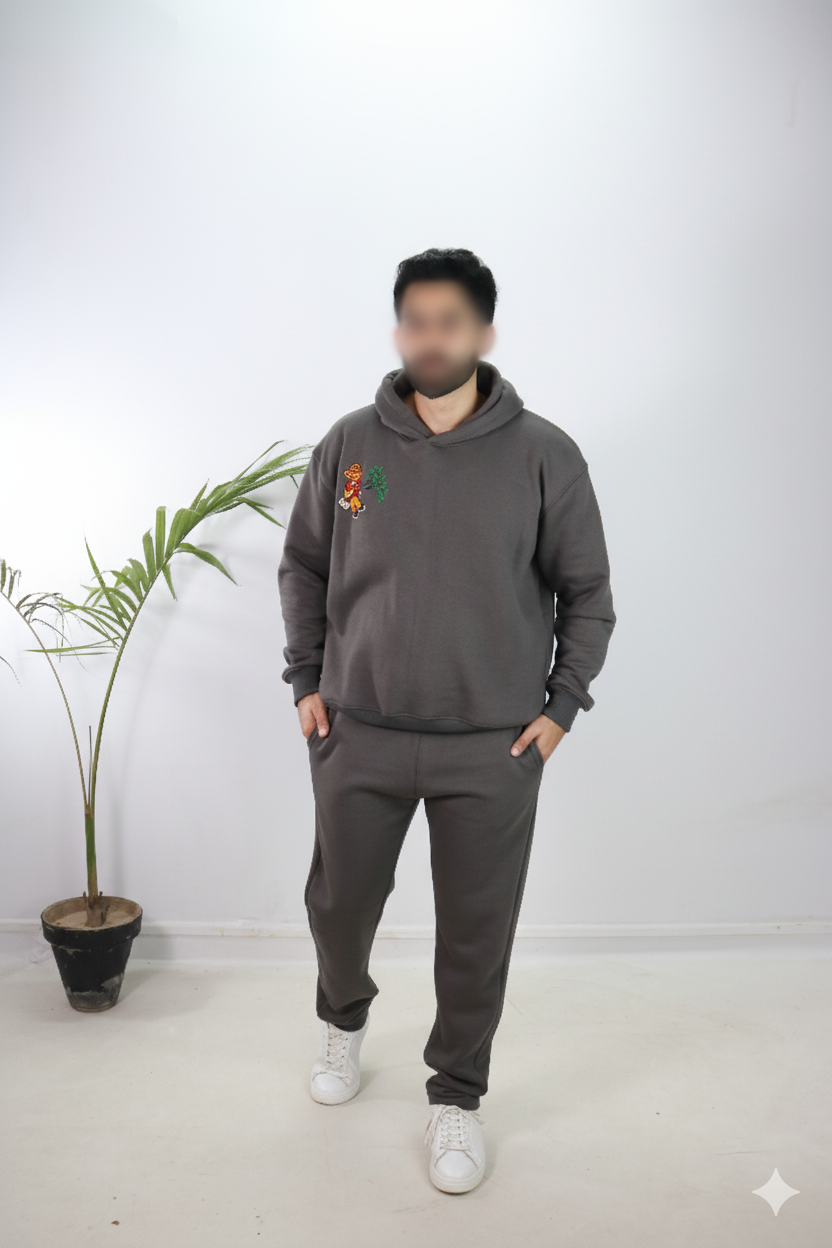Stay stylishly in sync with your partner in this Couple Dark Gray Embroidered Track Suit — where fashion meets comfort, and matching never looked this good.